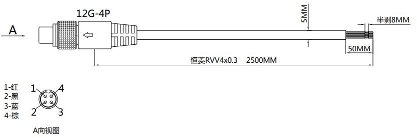 防水型航空插頭座連接器 12G,順序?yàn)?/span>:1:VCC,2:GND,3:485A,4:485B。