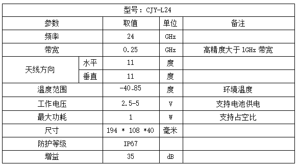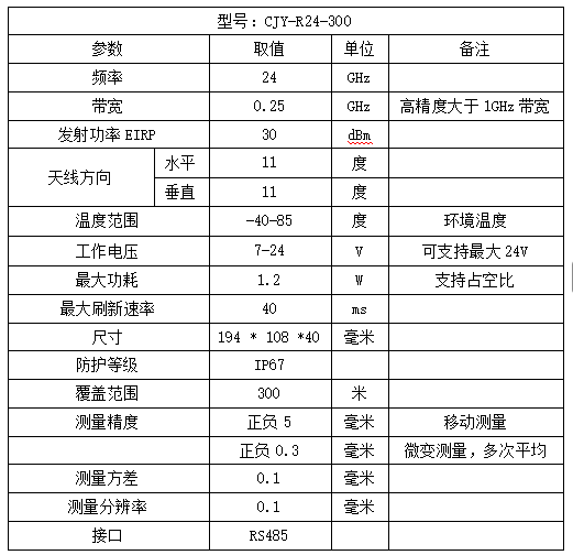 測(cè)距儀CJY-24,24GHz的高精度測(cè)距儀是利用FMCW毫米波雷達(dá)CJY-R24和雷達(dá)定位器CJY-L24之間形成的端到端的高精度測(cè)距性能,設(shè)計(jì)滿足各種環(huán)境下距離測(cè)量和微變變化監(jiān)測(cè)。測(cè)距儀通過(guò)采用FMCW毫米波非接觸的雷達(dá)和雷達(dá)二次反射器RDID結(jié)合的RDD測(cè)試技術(shù),可以實(shí)現(xiàn)雷達(dá)Radar到定位器Label的距離高精度測(cè)量。采用雷達(dá)射頻定位器測(cè)量技術(shù)和傳統(tǒng)的激光測(cè)距儀/全站儀+反射板/棱鏡測(cè)量方式一樣, 可以測(cè)量雷達(dá)到定位器的距離以及變化,采用毫米波射頻測(cè)量,抗干擾能力強(qiáng),適用于各種環(huán)境、各種天氣的距離監(jiān)測(cè),采用高精度雷達(dá)測(cè)距算法,測(cè)量距離精度高,滿足各種高精度距離變化以及微變的監(jiān)測(cè)測(cè)量。