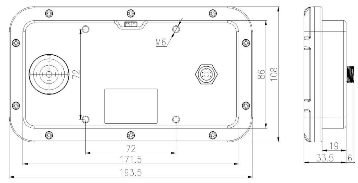 測(cè)距儀雷達(dá)和定位器采用相同的結(jié)構(gòu),相關(guān)尺寸如下,廠家可以提供安裝支架,支持掛壁和抱桿安裝。